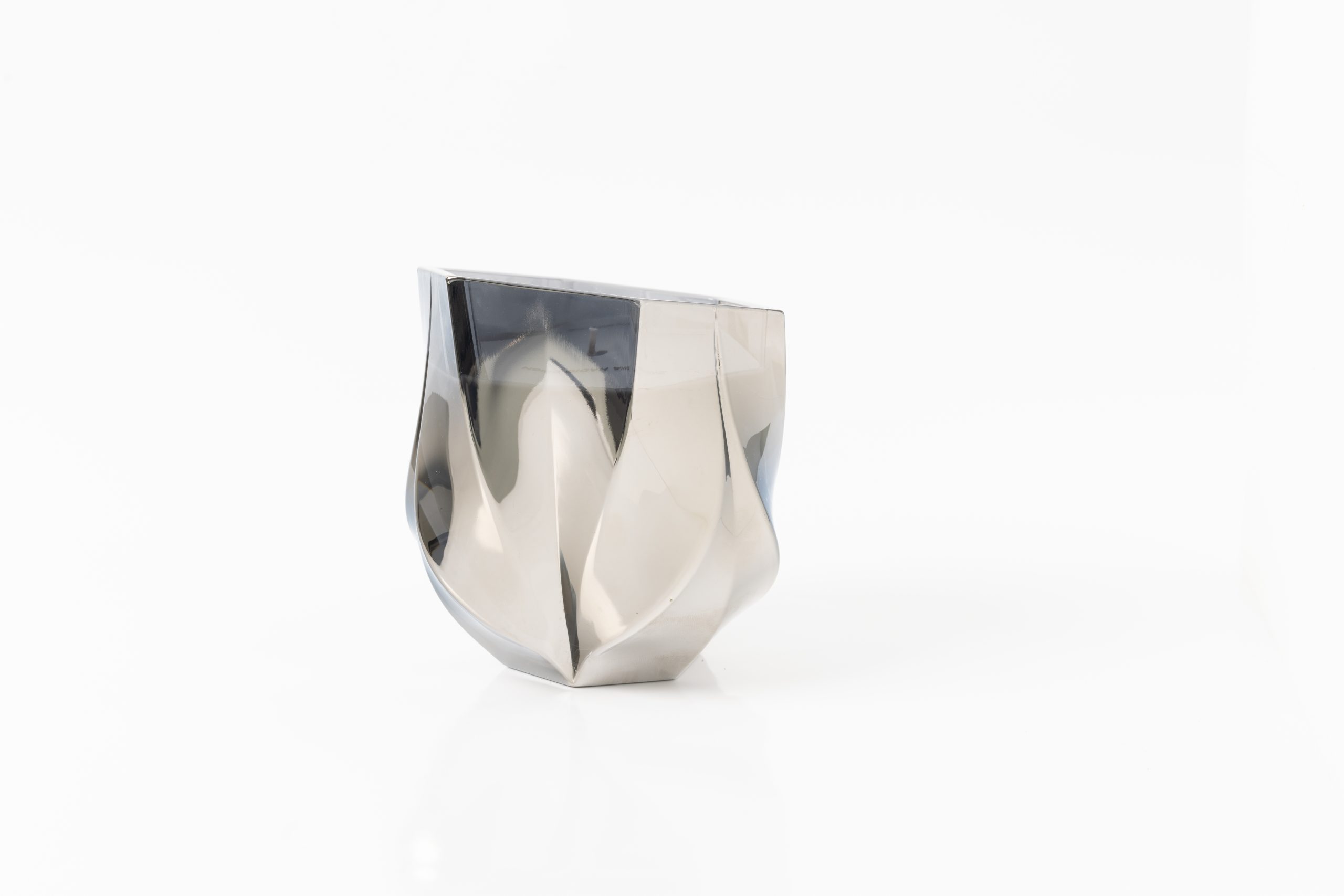 شمعة كريستالية فضية من الكريستال الفضي مع نفحات من الكاد المدخن وأوراق الأرز والفلفل الأسود، مما يخلق جواً هادئاً وفاخراً.